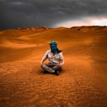 man standing on dimmed area